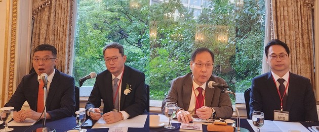(왼쪽부터)신이철 총무이사, 신중호 회장, 이정용 이사장, 송민섭 공보이사